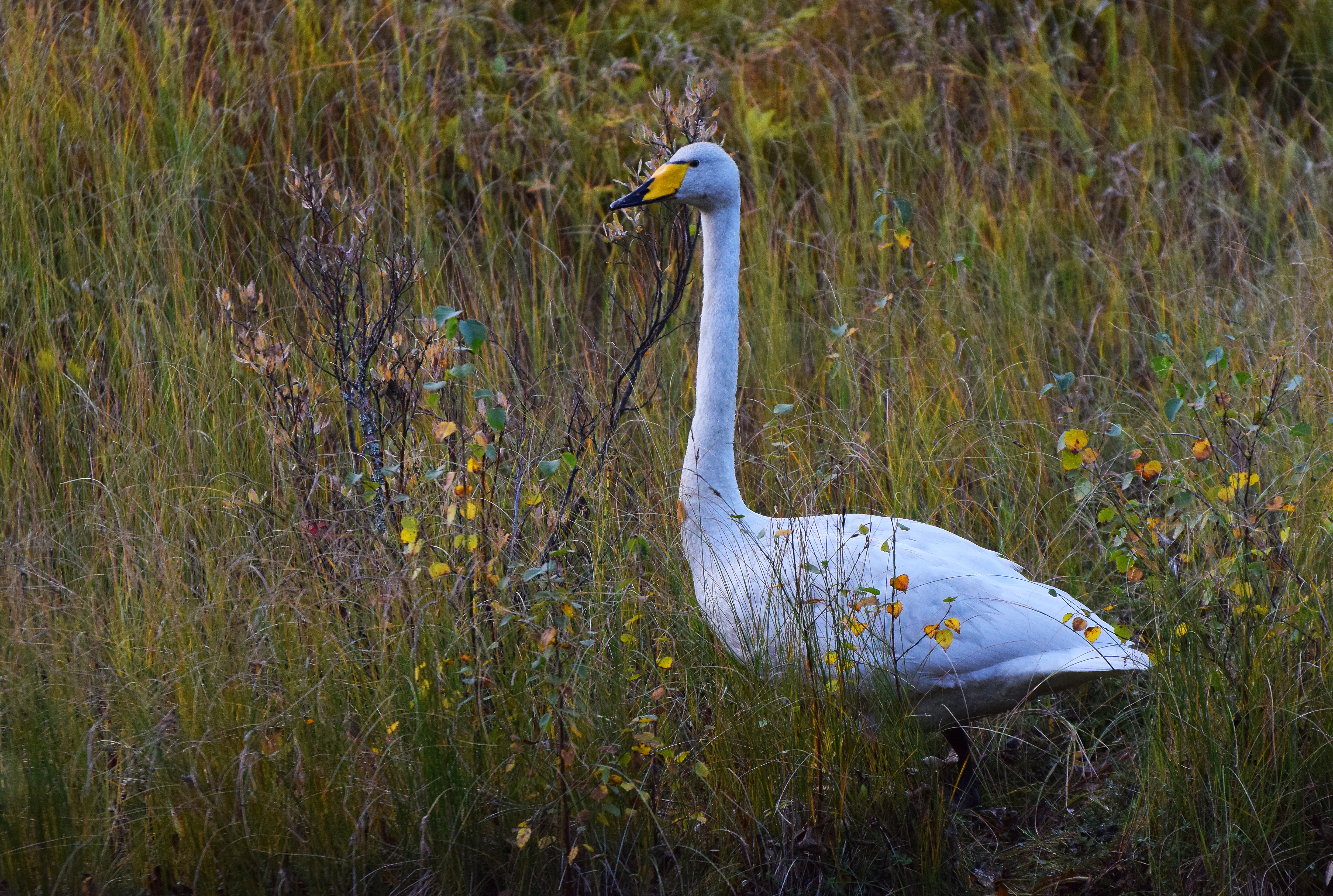 Sångsvanen vid strandkanten förbereder sig för flytt söderut. Sångsvanen var för några decennier sedan en ovanlig gäst här. Den hade sina häckningsplatser lång norrut och syntes bara vid flyttning. Nu häckar många svångsvanspar i närheten .