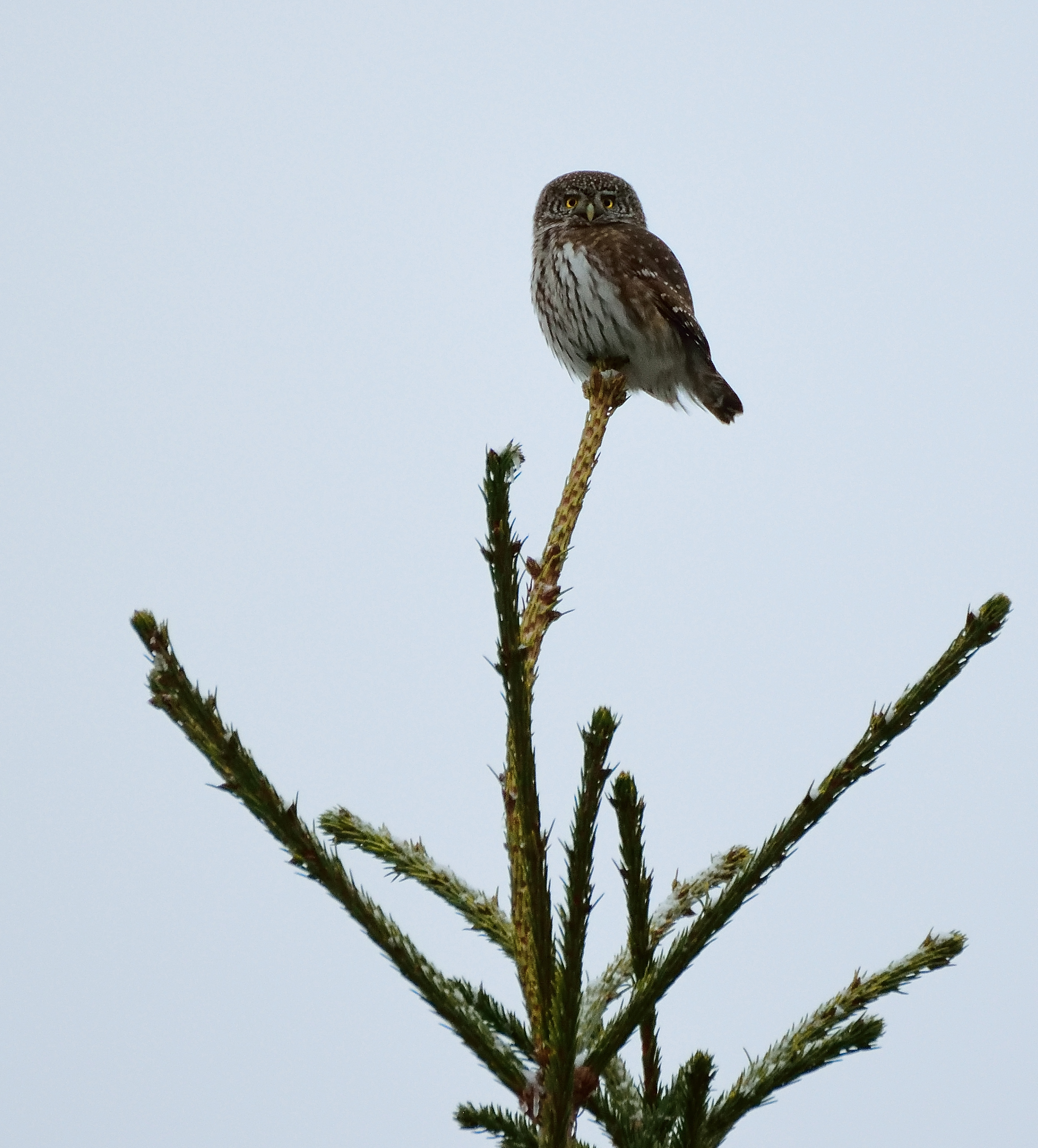 Sparvugglan är en annan toppspanare som hörs mer än syns med sitt flöjtande vissling.