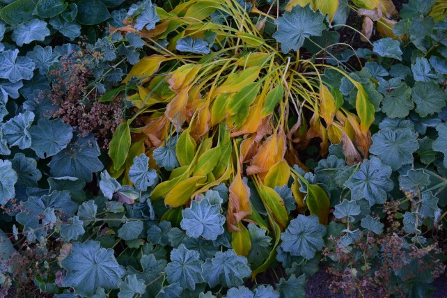 När jag vänder blicken nedåt har frosten gjort sitt med årets rabatter och grönsaker