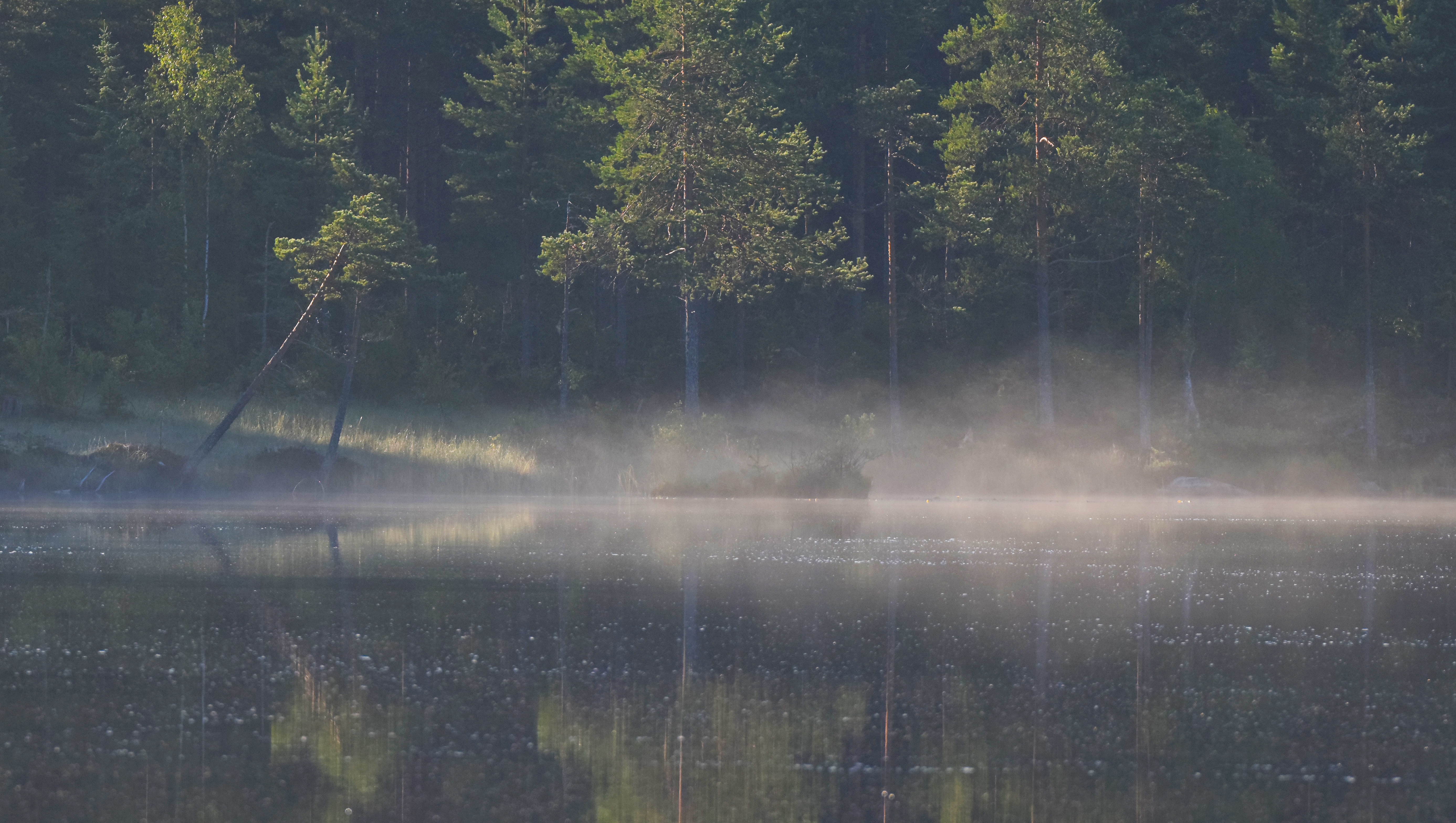 Ibland dyker det upp de mest oväntade scenerierna på otillgängliga platser. Efter en vandring på ett par kilometer över ett flackt myrområde, så befinner jag mig vid kanten av en tjärn omgärdad av höga klippor.